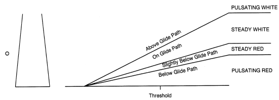 Similarly, as the aircraft strays on the high side of the glide path, the white light begins to pulsate. The higher above glide path the aircraft is, the faster the white light pulsates.