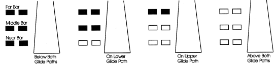 At some locations, a three bar VASI system is used. With these types of VASI's, the near and middle bars provide on glide path angle, while the upper two bars provide a steeper descent angle. Use of a three bar VASI involves choosing whether you want to use the near and middle bars or descent on the steeper angle provided by the top two bars. Treat the two bars you choose as a two bar VASI.