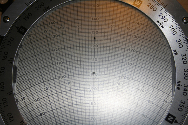 Next, make a mark that represents the wind speed. The wind speed today is 25 knots. So, make a mark 25 knots from the center.