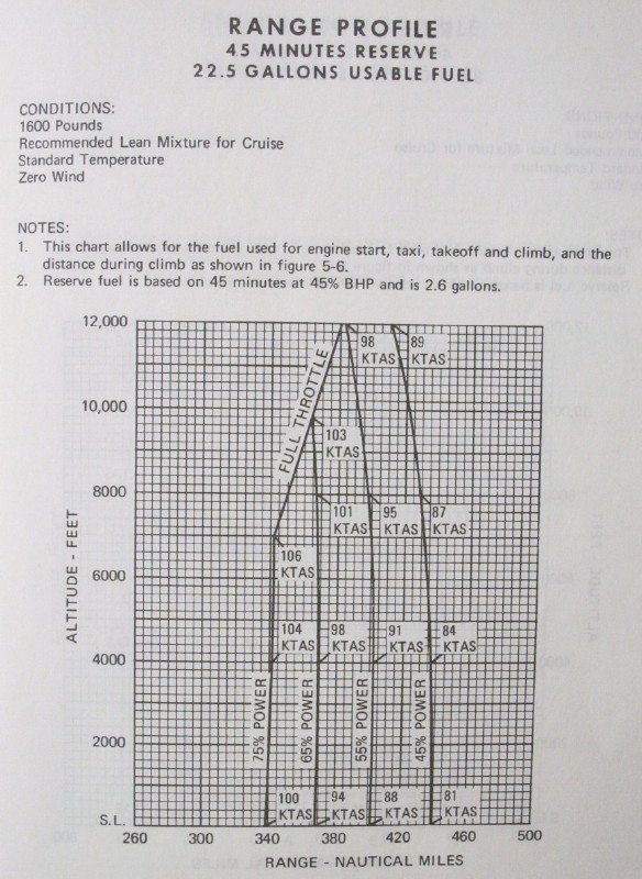 The following two charts were taken from two different aircraft manufacturers. They show examples of how different manufacturers might portray range performance in their respective Pilot's Operating Handbook's.