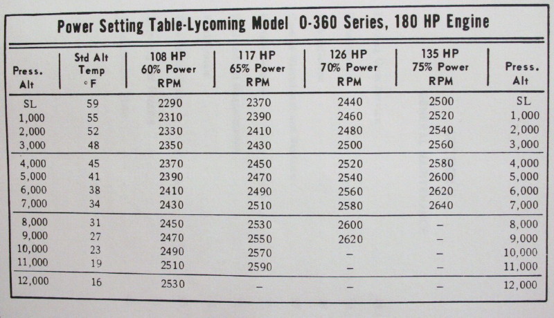 In order to aid you in determining how to setup the engine during cruise flight, manufacturers often include a chart such as the one below...